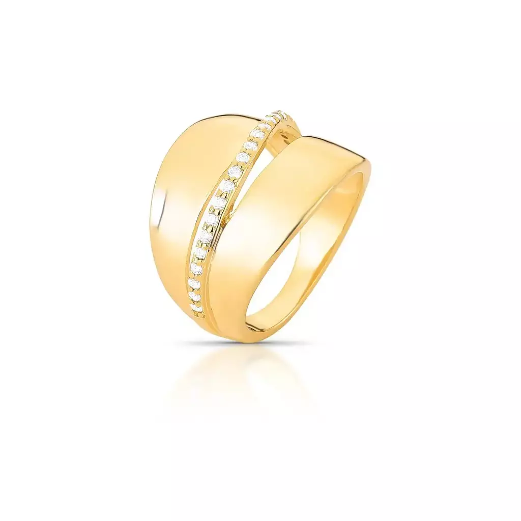 O anel curvo e vazado com zircônias é uma joia sofisticada e moderna, ideal para quem busca elegância com leveza. Seu design com frente vazada e linha de zircônias curvas proporciona brilho sutil e charme refinado, valorizando qualquer produção. Banhado a ouro, é fabricado com liga metálica de cobre e zinco, livre de níquel e com camada antialérgica. O verniz protetor garante maior durabilidade, tornando-o perfeito para uso diário ou ocasiões especiais. Uma peça que une delicadeza e estilo em cada detalhe.