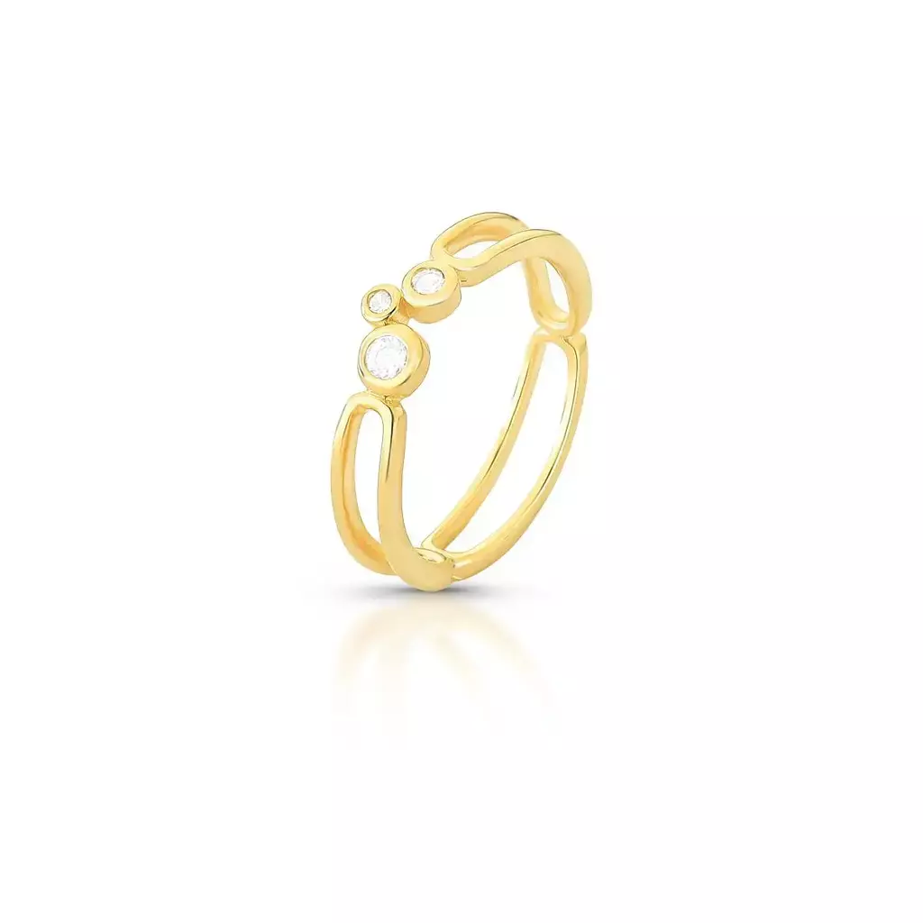 O anel vazado com duas voltas e cristais redondos é a escolha perfeita para quem busca elegância e estilo em um único acessório. Seu design moderno e delicado valoriza qualquer produção, trazendo sofisticação para o dia a dia ou ocasiões especiais.
