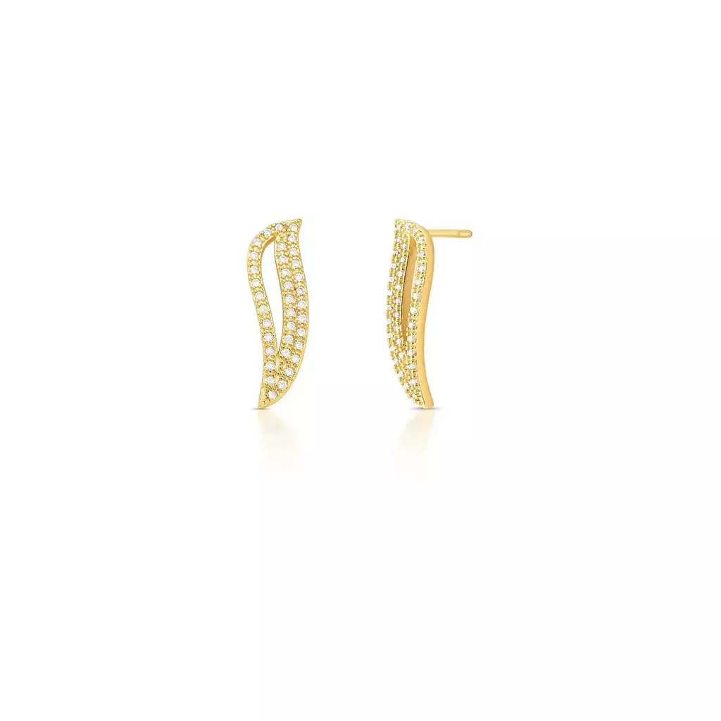 O Brinco Curvo Vazado Cravejado com Zircônias Banhado a Ouro é uma peça que une delicadeza e sofisticação. Seu design curvo e vazado, aliado ao brilho das zircônias brancas, torna este acessório ideal para compor looks modernos e elegantes.