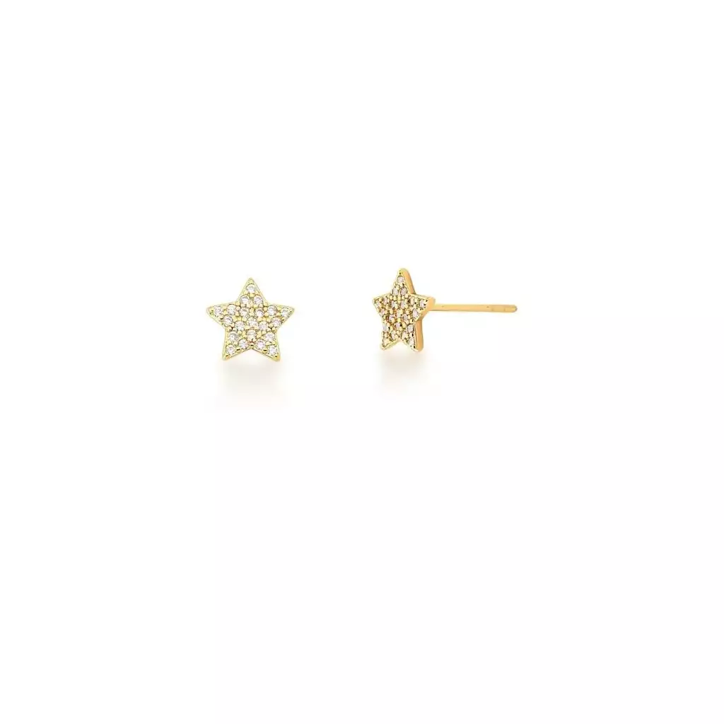 O Brinco Estrela com Zircônias Brancas Banhado a Ouro 18K é a peça perfeita para quem busca delicadeza e brilho em um acessório versátil. Seu design em formato de estrela, aliado à cravação de zircônias brancas, proporciona um visual elegante e moderno, ideal para compor looks casuais ou sofisticados.