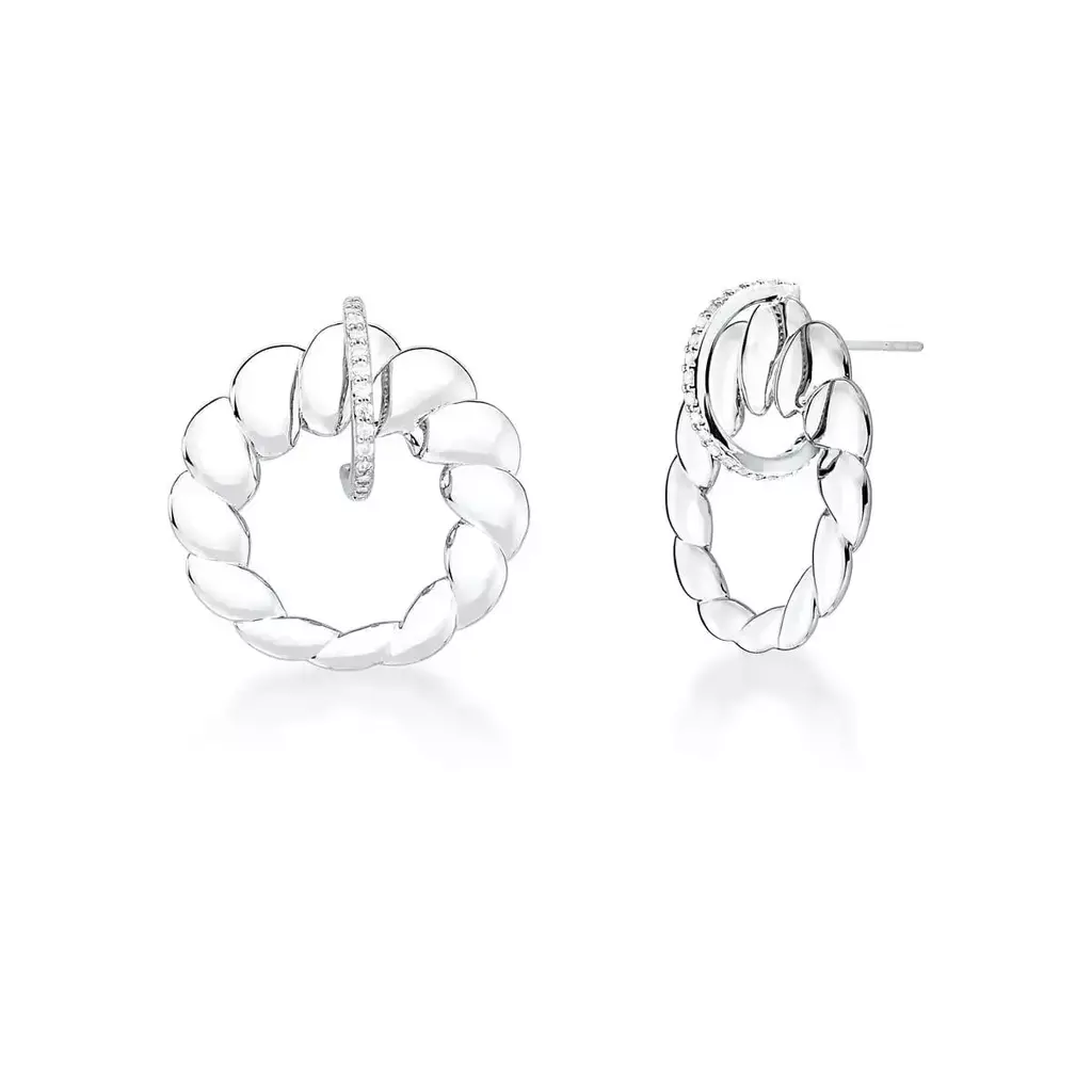 O Brinco Redondo Vazado com Zircônias Banhado a Ródio é a escolha perfeita para quem busca sofisticação e modernidade. Inspirado na tendência náutica, esta peça traz o detalhe trançado e vazado, aliado ao brilho das zircônias brancas, criando um visual elegante e cheio de personalidade.