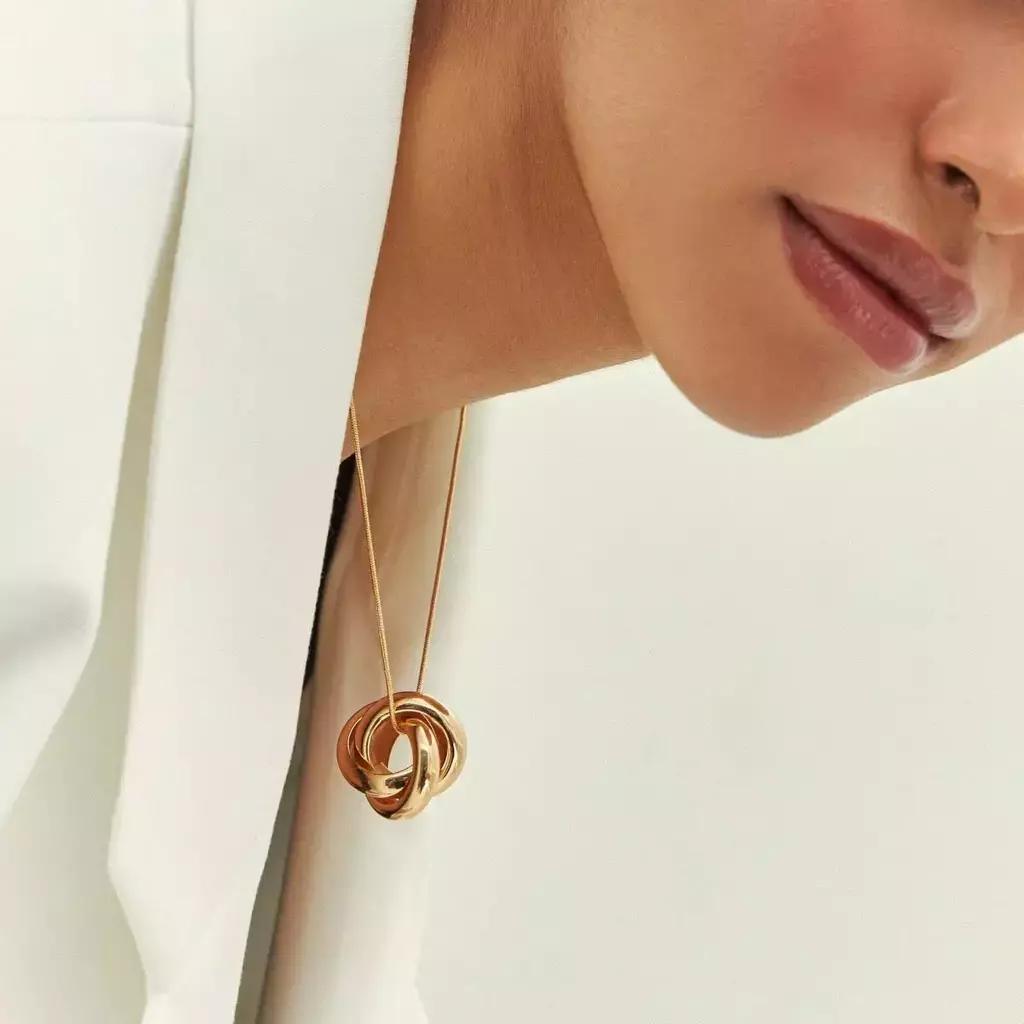 Descubra a elegância e a versatilidade do Colar com Pingente de Nó Vazado Banhado a Ouro, uma peça indispensável para quem valoriza sofisticação e delicadeza na alta joalheria.