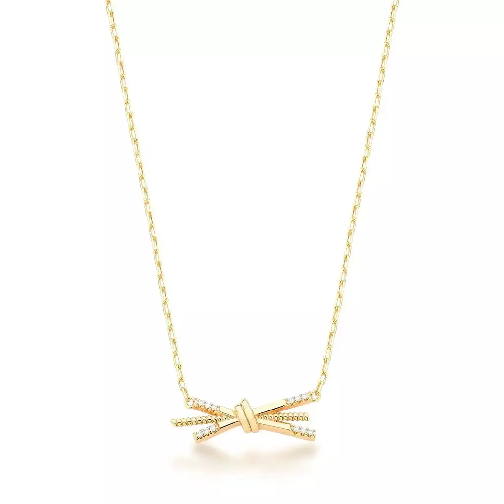 O Colar com Pingente em Palitos Trançado Banhado a Ouro é uma peça que une elegância e modernidade em um design exclusivo. A corrente em malha de elos retangulares acompanha um pingente formado por palitos lisos e trançado cravejado de zircônias brancas, criando um visual sofisticado e cheio de brilho.