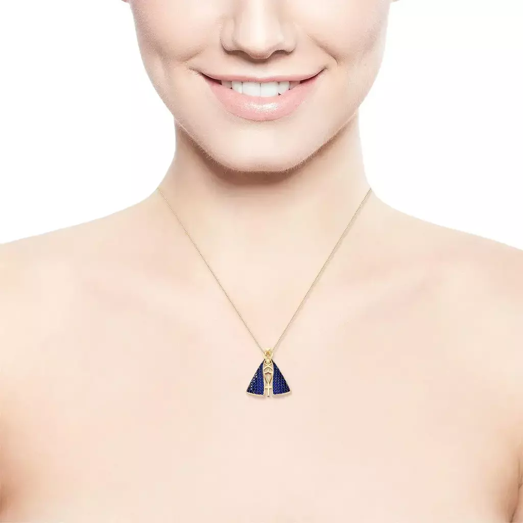 Corrente com pingente de Nossa Senhora Aparecida banhada a ouro, com dois lados cravejados: um com zircônias na cor azul e outro com zircônias brancas. Uma peça que une fé, beleza e versatilidade, ideal para compor looks elegantes e cheios de significado. O design delicado e o brilho das pedras tornam o colar perfeito para uso diário ou ocasiões especiais. Produzido com liga metálica de cobre e zinco, recebe banho de ouro e verniz protetor para maior durabilidade. Livre de níquel e com camada antialérgica, oferece conforto e segurança.
