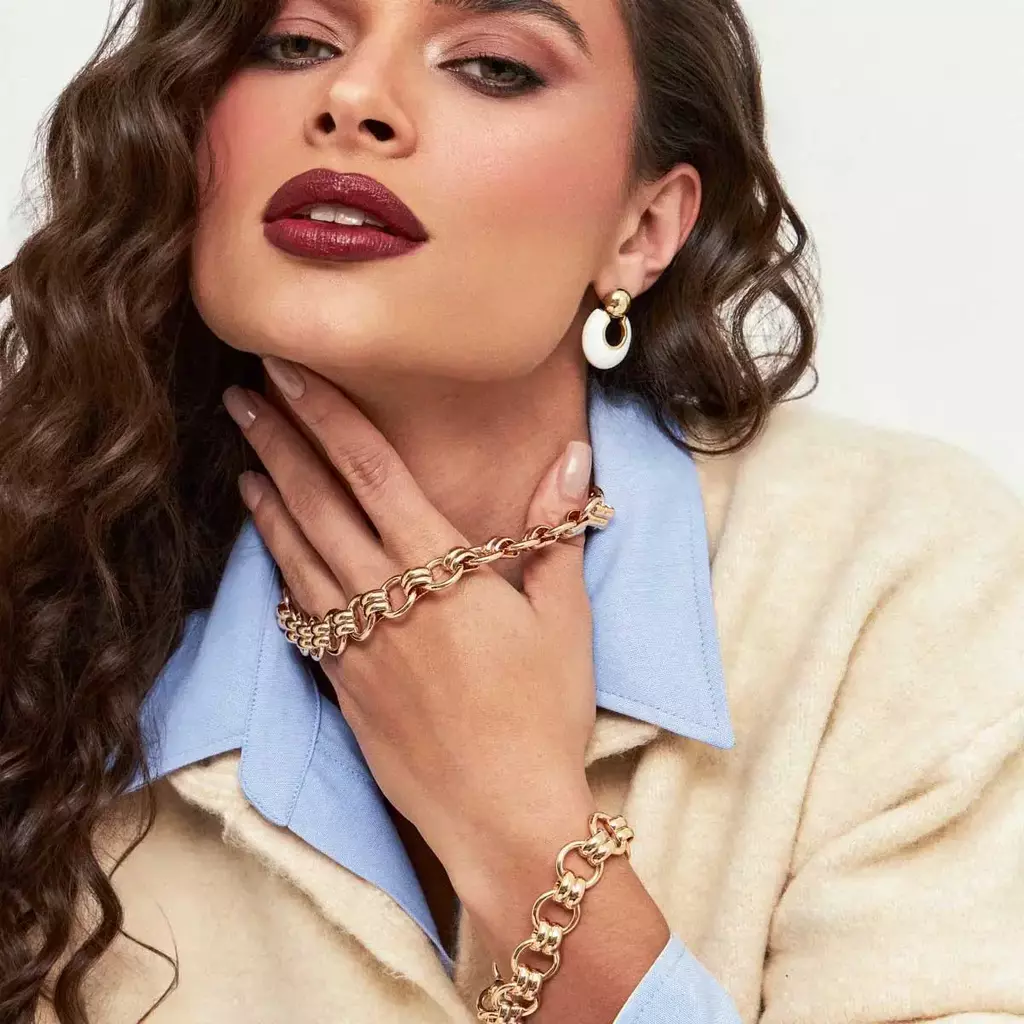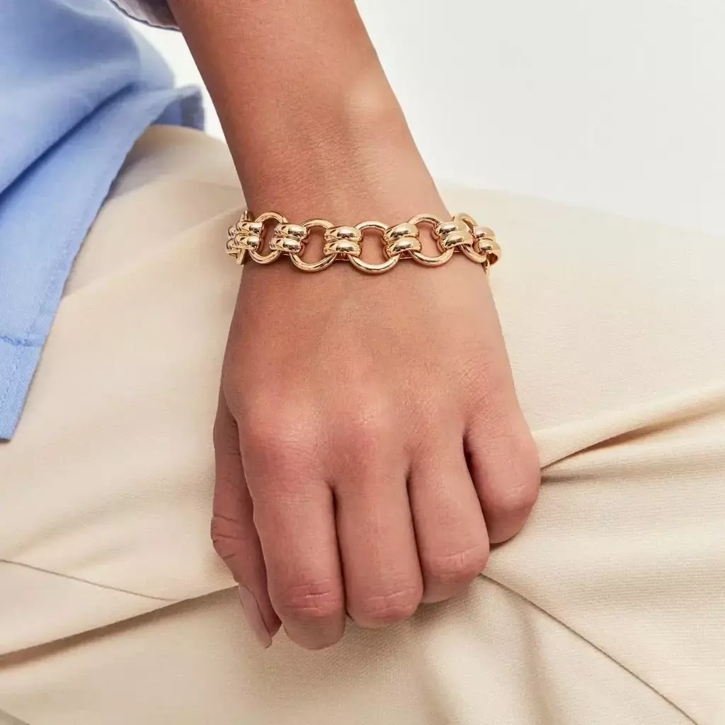 Pulseira banhada a ouro com elos intercalados redondos e vazados, acabamento liso e fecho boia. Seu design moderno proporciona sofisticação e versatilidade, ideal para compor looks elegantes no dia a dia ou em ocasiões especiais. Fabricada com liga metálica de cobre e zinco, recebe banho de ouro e verniz protetor para maior durabilidade. Livre de níquel e com camada antialérgica, é uma peça confortável e segura para todos os estilos.
