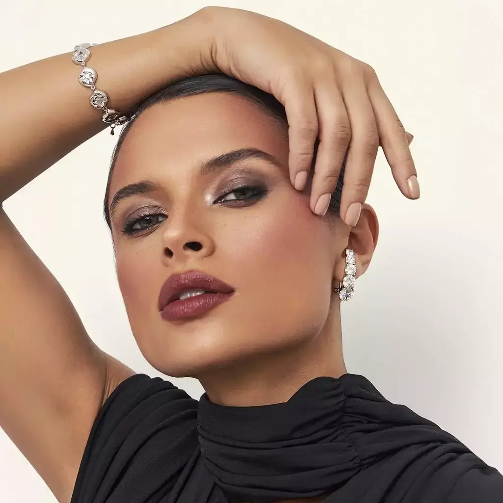 Pulseira texturizada com design curvo e aplicação de losangos em cristal, banhada a ródio. A combinação entre o brilho dos cristais e a textura da peça confere um visual sofisticado e moderno, ideal para quem busca elegância em todos os detalhes. Versátil, pode ser usada sozinha ou em composições com outras pulseiras. Produzida com liga metálica de cobre e zinco, recebe banho de ródio e verniz protetor que garante maior durabilidade. Livre de níquel e com camada antialérgica, proporciona conforto e segurança para o uso diário.